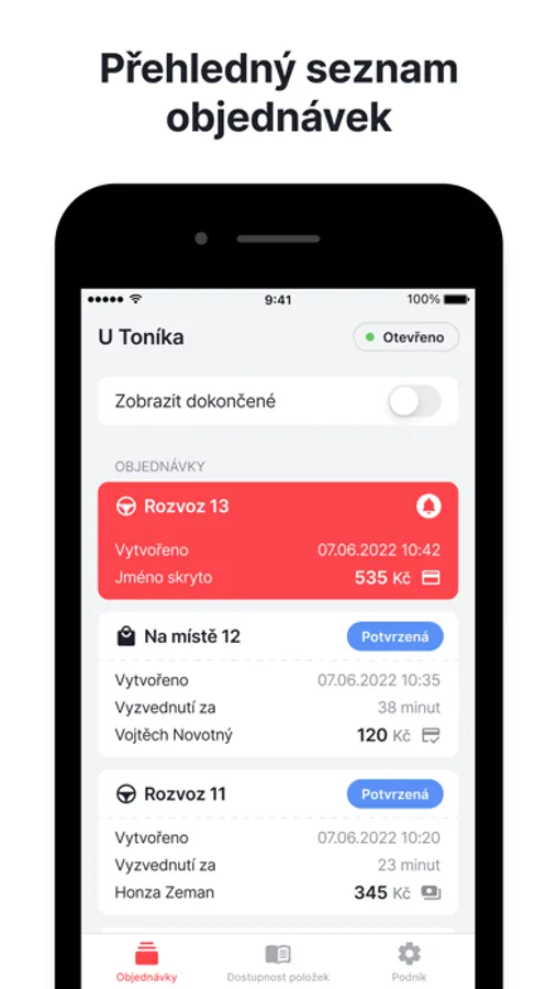 Přijímejte a snadno spravujte své objednávky rozvozů.
