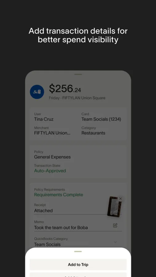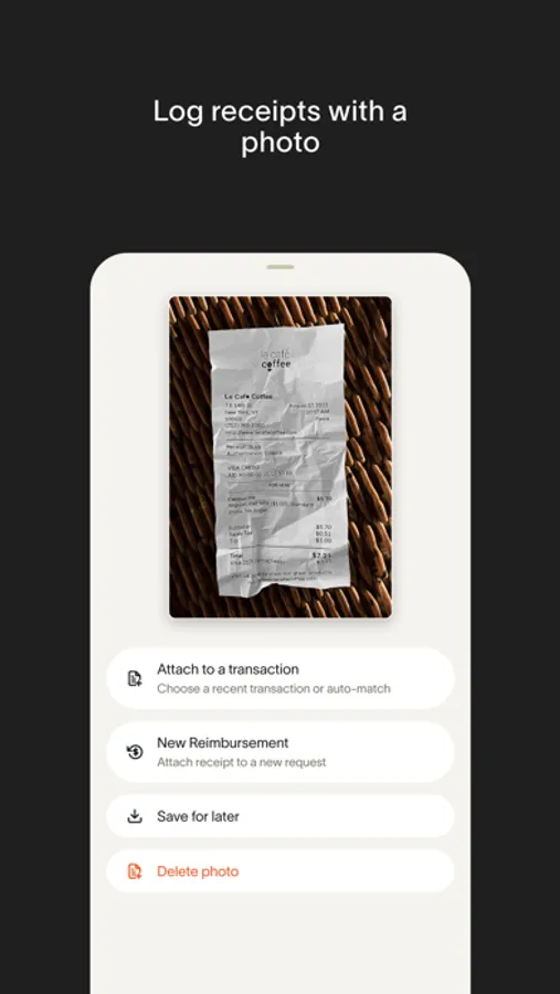 - Take a picture of your receipt and auto-match to transaction