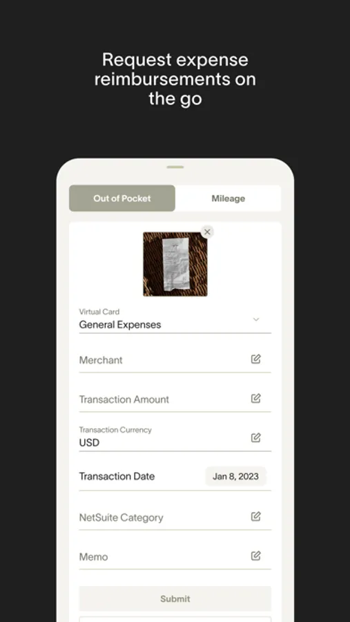 Ramp Mobile puts finance automation in your pocket. Pay for expenses quickly with your corporate card at your fingertips. Submit expense reports and reimbursements on the go by taking a picture of your receipt and tapping in a memo or other submission requirements. Plus, with simplified visibility, you’ll always have the information you need on expense policies, recent transactions, or spend requests.