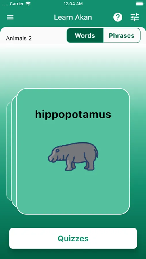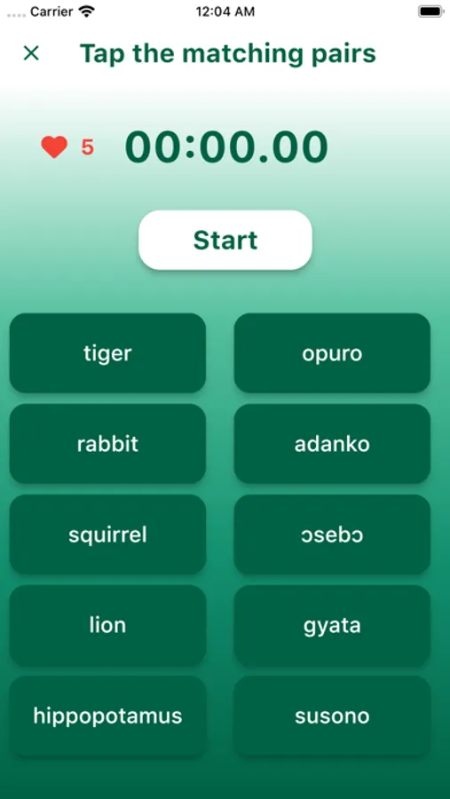 - Both the English and Akan words are presented alongside a playable audio sound of the selected word in Akan.