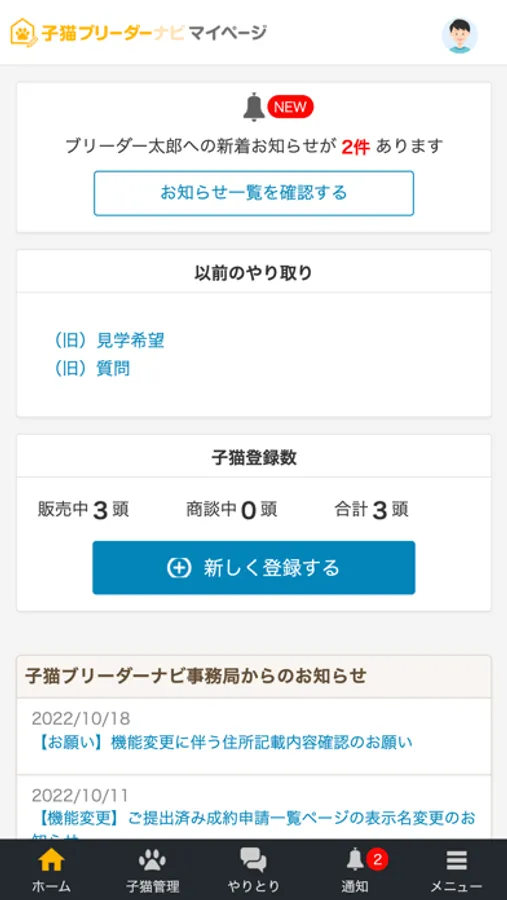 優良ブリーダーと未来の愛猫を探す方のマッチングサイト『子猫ブリーダーナビ』の、ブリーダー様向けブリーダーマイページアプリです。