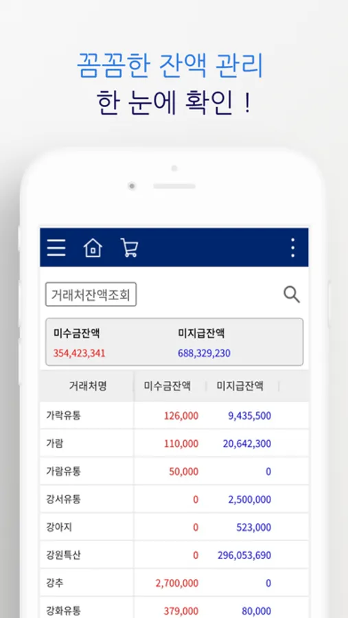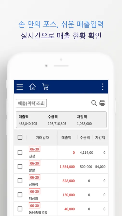 외상 잔액이 얼마 남았는지, 수금은 제 때에 잘 되고 있는지, 거래처가 최근에 가져간 상품은 뭐 였는지, 최근에 판매했던 상품 단가는 얼마 였는지 등 거래처의 모든 정보를 실시간으로 보면서 판매할 수 있습니다. 한 달 전, 일 년 전 거래도 즉시 조회하여 보면서 판매할 수 있고, 매장에 상품 재고가 몇 개나 남아 있는 지 실시간으로 알면서 판매할 수 있습니다.