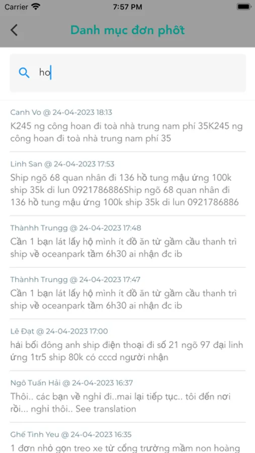 - Cập nhật đơn mới từng giây.