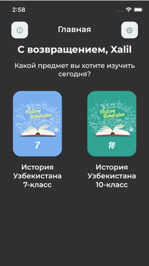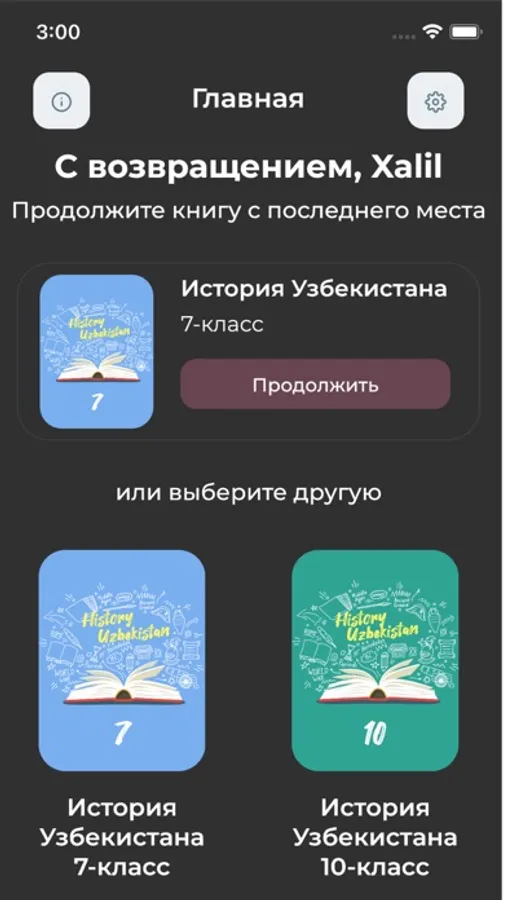 E-kitob bu O'zbekiston Tarixi bo'yicha elektron kitoblar to'plami. Elektron kitob bir necha tillarda mavjud (qozoq, qirg'iz, tojik, turkman, rus, qoraqalpoq va o'zbek). Kitoblar 7 va 10 sinflar uchun mo'ljallangan.