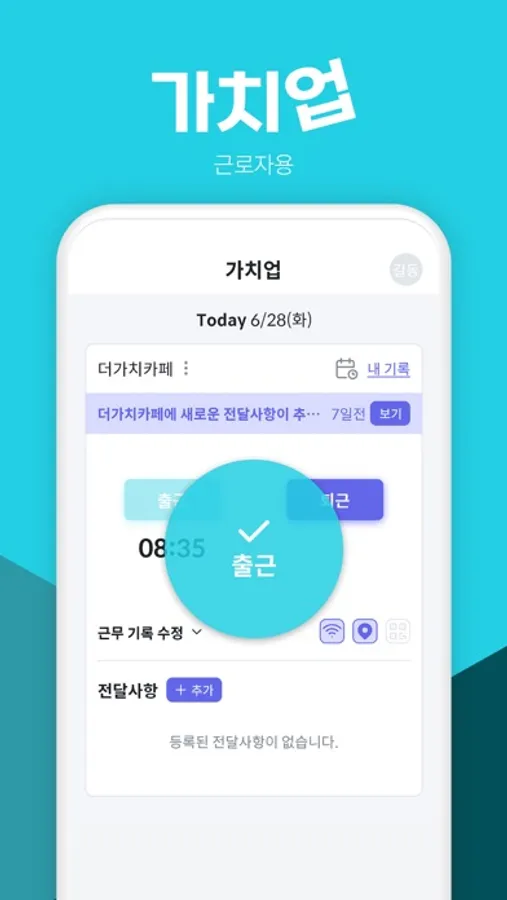 가치업은 출퇴근 기록으로 정확한 급여정보를 제공해 드립니다.