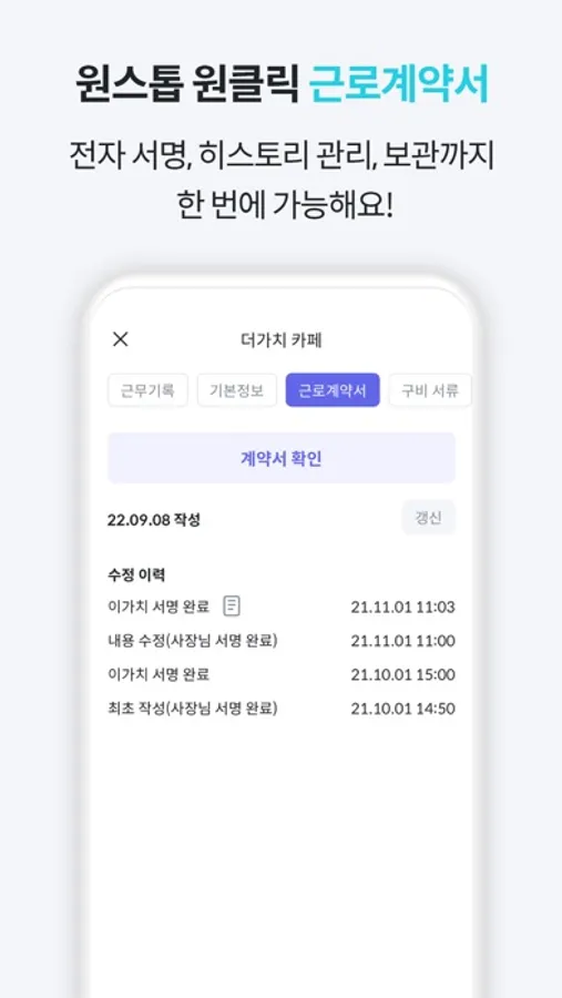 사장님에게 근로계약서를 쉽게 요청할 수 있어서 내 근로권리가 증대됩니다.