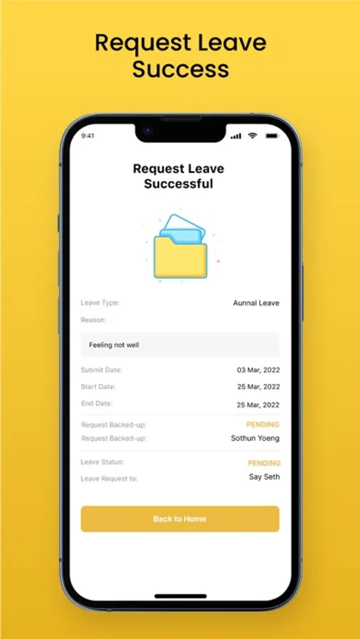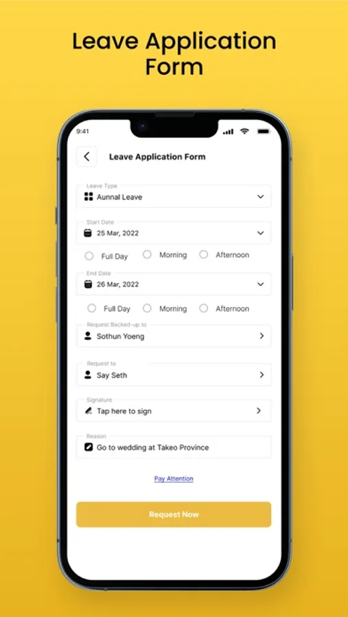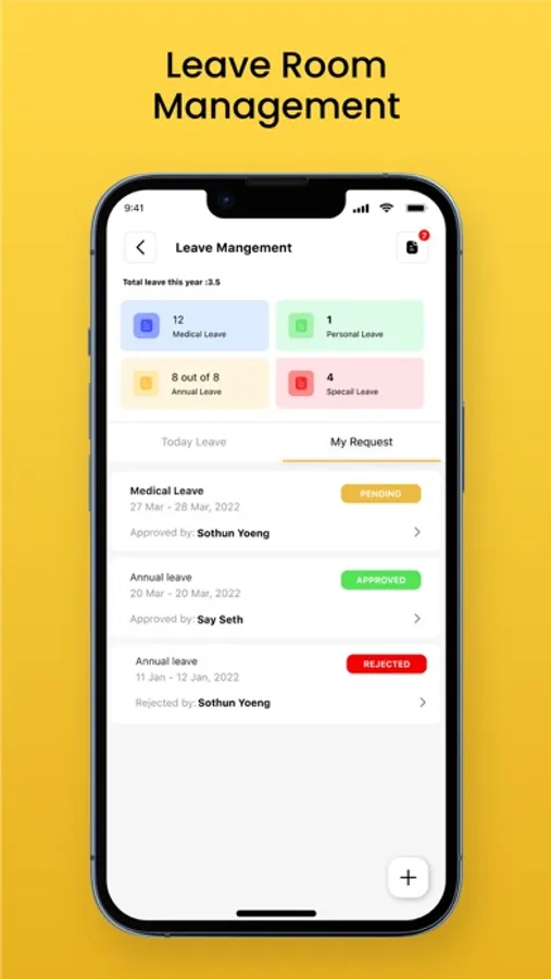 - Request leave (Annual Leave, Special Leave, Medical Leave, Personal Leave).
