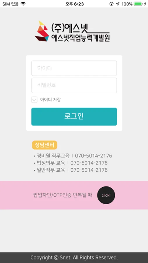 에스넷 직업능력 개발원 온라인 교육을 수강하기 위한 앱입니다.