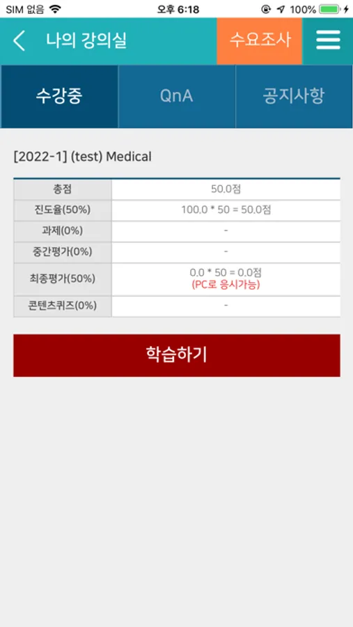 수강시 진도율 체크와 학습진행에 있어 필요한 학습도구들을 지원합니다.