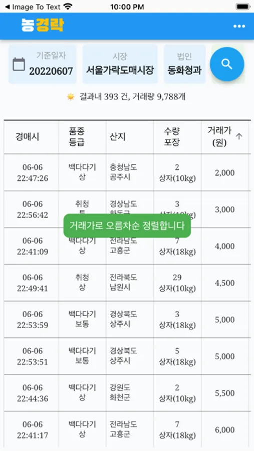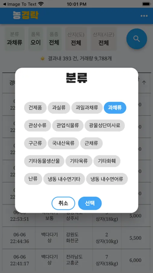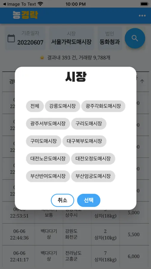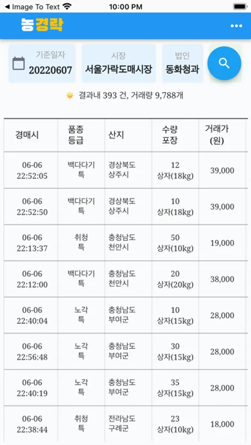 농산물 실시간 경매 가격 정보를 조회할 수 있습니다.