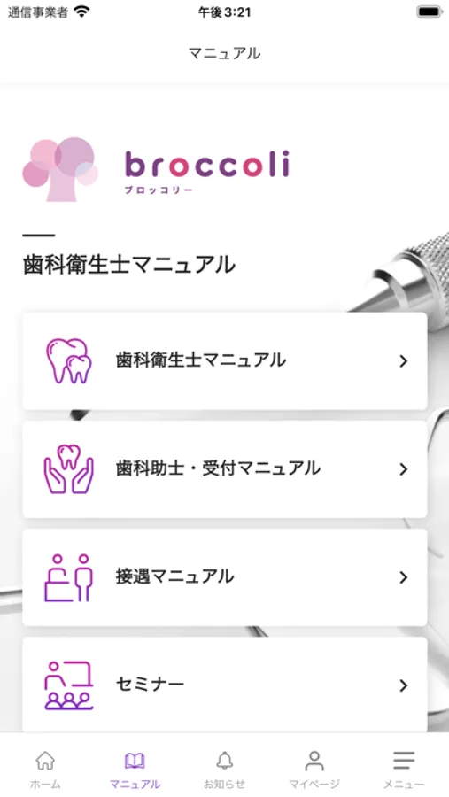 歯科医院で働くみなさんのためのマニュアルアプリです。