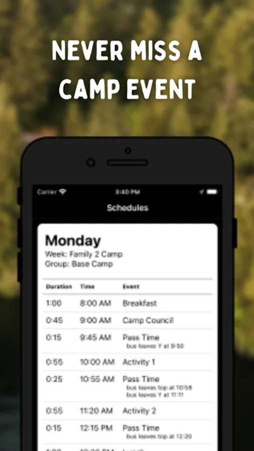 -- Camp Schedules: Our family camps are fast-paced and packed with fun. Use the app to view all the daily schedules for the week and never miss the next thing.