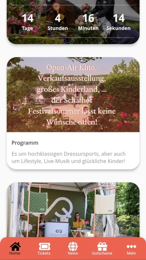 Erlebe einzigartige Events in besonderen Atmosphären! Ob live vor Ort während den Events oder um die Wartezeit dazwischen zu überbrücken – mit der Schafhof Connects App bist du immer auf dem neuesten Stand und profitierst dabei von unschlagbaren Vorteilen. Wir, die Schafhof Connects, sind eine Veranstaltungsagentur in Familienhand aus dem schönen Kronberg. Unser Markenzeichen sind exklusive, professionelle und gleichzeitig nahbare und von Herzlichkeit geprägte internationale Reitsportveranstaltungen, unser Portfolio umfasst aber noch viel mehr.