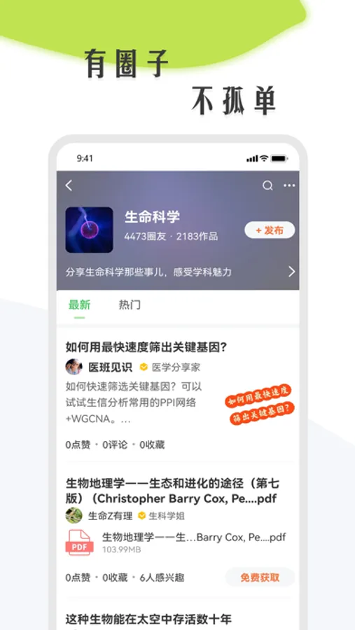 有圈子,不孤单。生物圈App,对于学习而言,它是专业学习的“图书馆”,是获取学习资源,拓展专业视野的好软件;对于工作而言,它是专业进修的“加油站”,是增进学术交流,强化职业技能的好工具;对于生活而言,它是全民科普的“催化剂”,是提升科学素质,分享业余爱好的好平台。