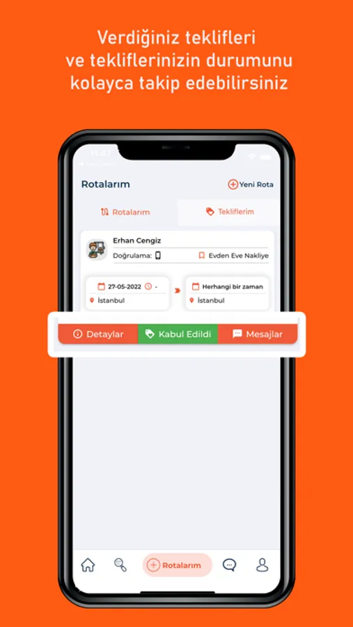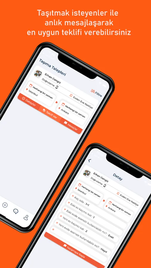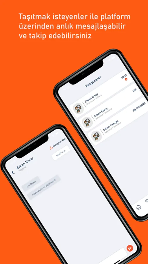 • Taşımacılar ile anlık olarak yazışabilirsiniz.