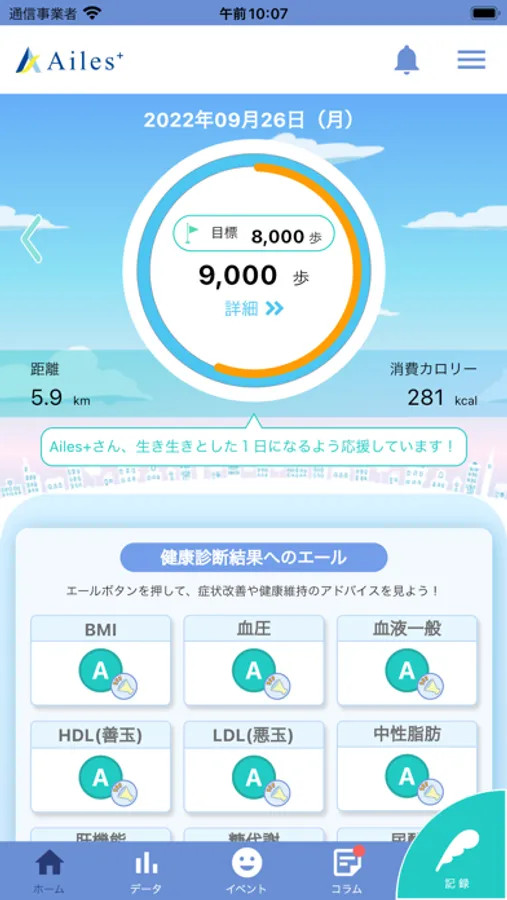 「健康管理をもっと簡単に、もっと楽しく」をコンセプトに、健康診断結果に基づくアドバイスや、イベントの開催など、あなたの健康増進・改善の取り組みをAiles+が後押しします。
