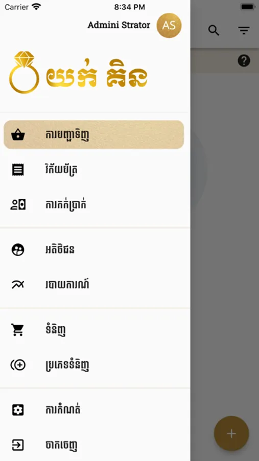Internal store panel for seller to manage selling jewelry for Yok Kin store.