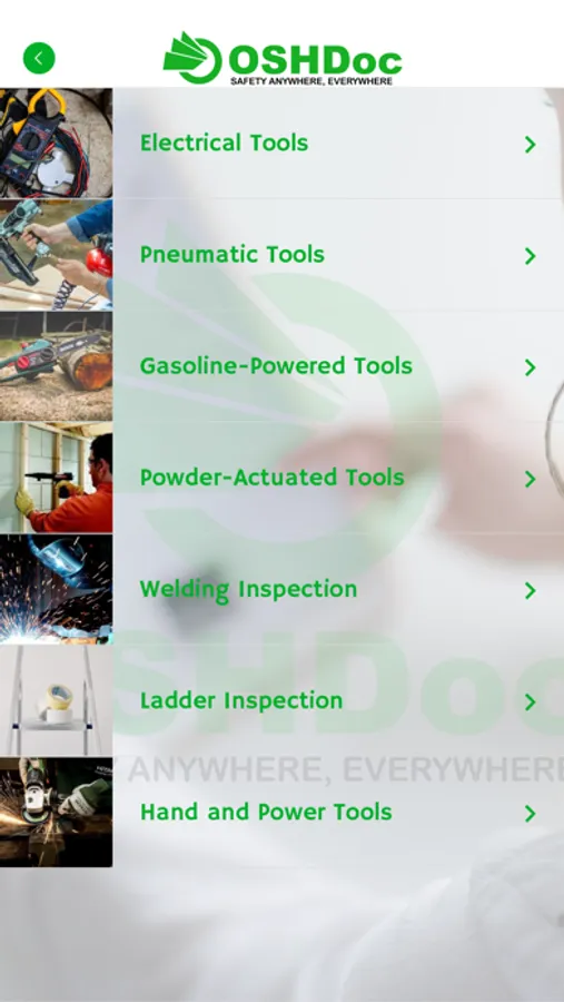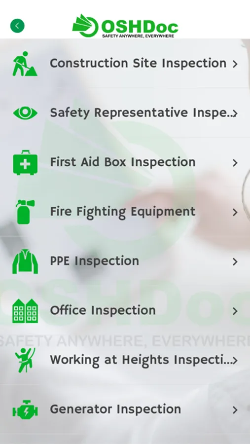 Our free app OSHDoc sets out to covert your mobile device into a powerhouse of safety inspections. No more doing the old way, just load up the app and go. We host a wide variety of safety inspections as well as inspections focused around the workplace, driven machinery and tools. You can also submit accident and incident reports to your employer, and report on hazards, risks and near-misses.