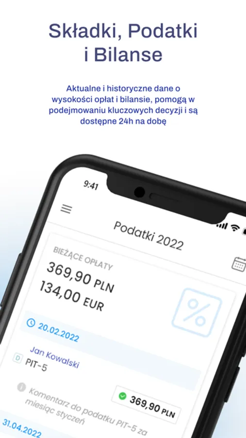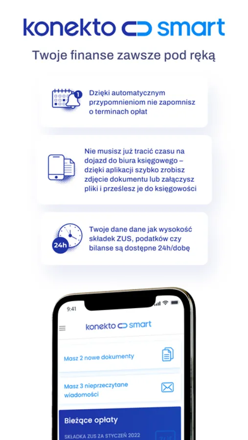 Kontroluj finanse swojej firmy i otrzymuj wiadomości od biura księgowego.