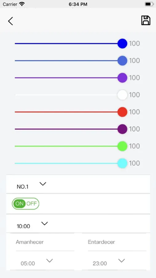 Com O aplicativo OceanTech você pode controlar sua Luminária SOLARA de maneira fácil e muito intuitiva usando o aplicativo com conexão Bluetooth, com ele você pode programar o amanhecer e o entardecer bem com até 8 diferentes períodos durante o dia , podendo também escolher os dias da semana que você quer repetir a programação.