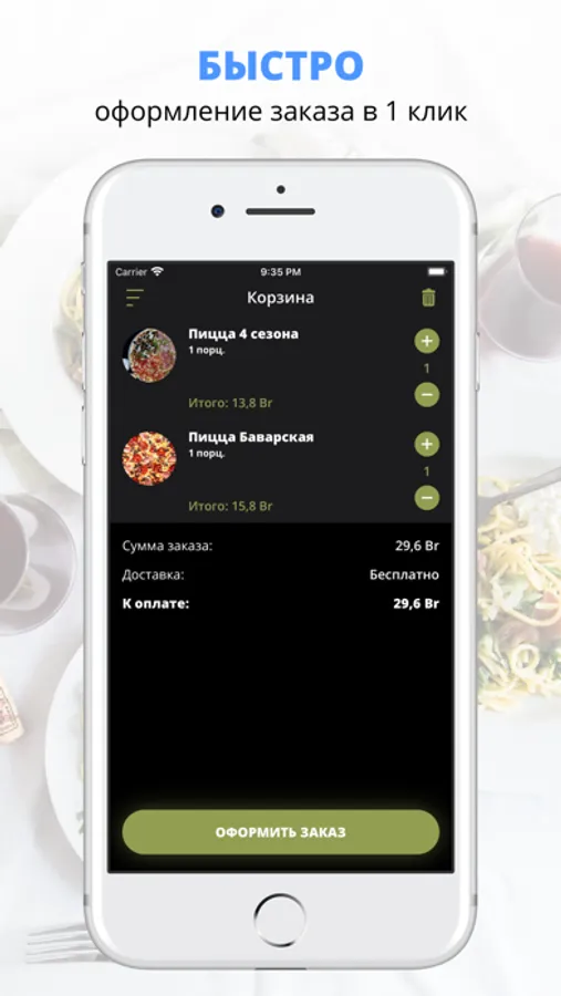 удобная корзина и быстрое оформление заказа,