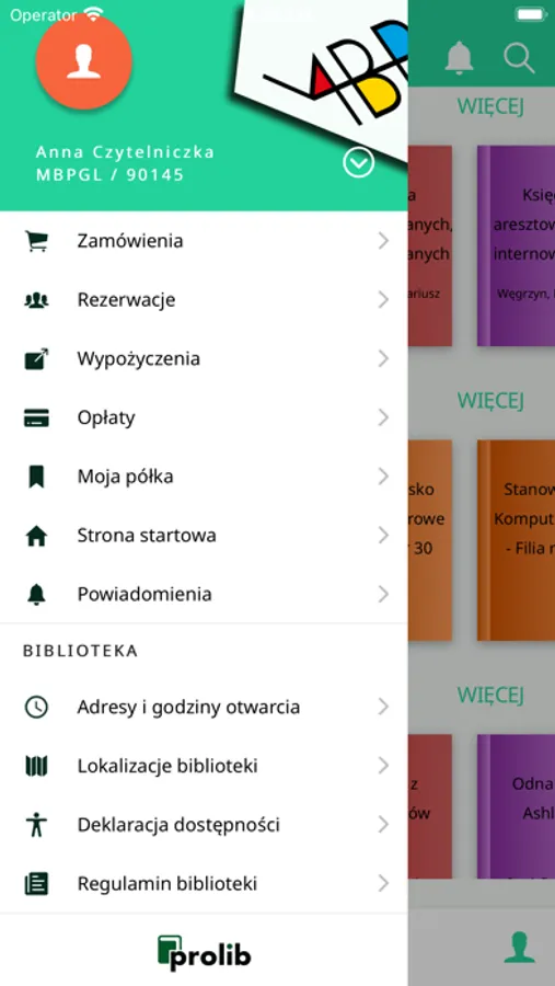 Aplikacja w pełni obsługuje katalog biblioteki oraz konto czytelnika biblioteki.