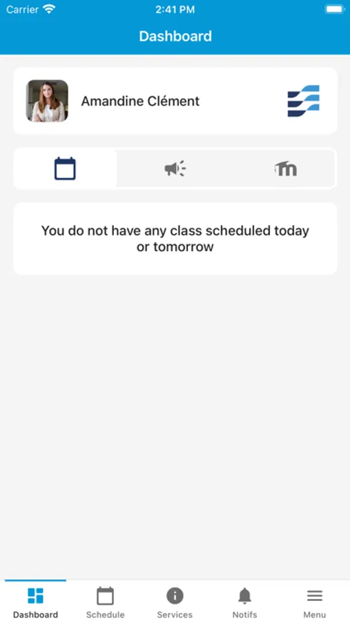 Consult your class schedule in real time and receive a notification in the event of a change (cancellation, change of room, etc.).