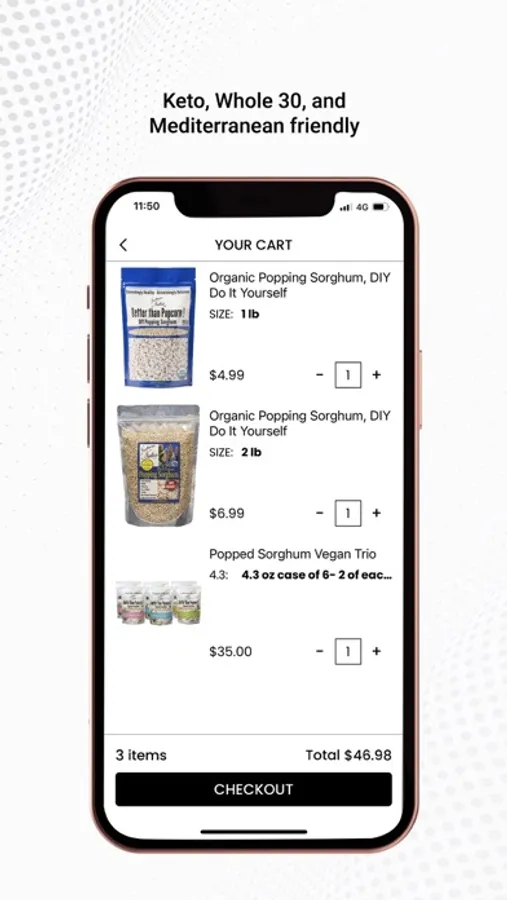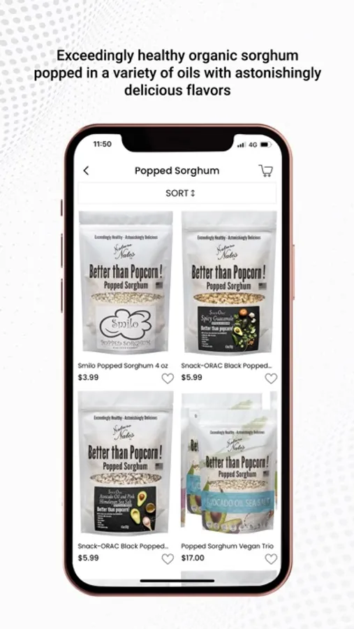 Popped Sorghum is just like popcorn only much healthier. It has a lot of Protein, it’s Gluten-free, is in the top 12 Non-allergen, Vegan, Non-GMO and the Sorghum is Organic. The Avocado Sea Salt product has ONLY 3 ingredients!
