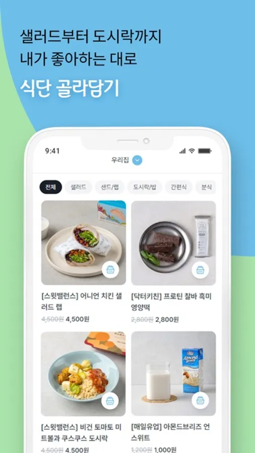 샐러드부터 샐러드 랩, 도시락, 간식까지 내가 좋아하는 대로 골라담는 식단이에요.