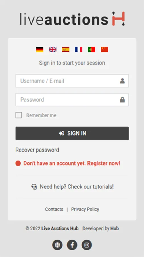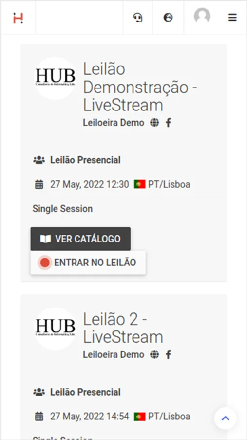 A sua opinião é importante para nós. Entre em contacto connosco com qualquer dúvida em liveauctionshubapp@hub.pt.