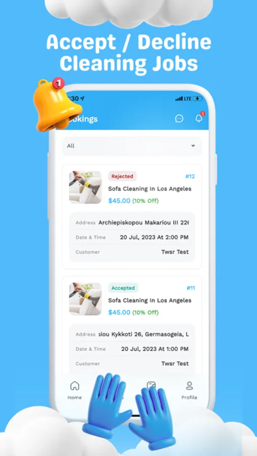 Join the Hoova family and let us connect you to clients seeking your services in your local area. With Hoova Mate, you can streamline your cleaning services, increase your bookings, and boost your earnings on-demand. Instantly receive, accept, or decline booking requests and optimize your work schedule at your convenience.