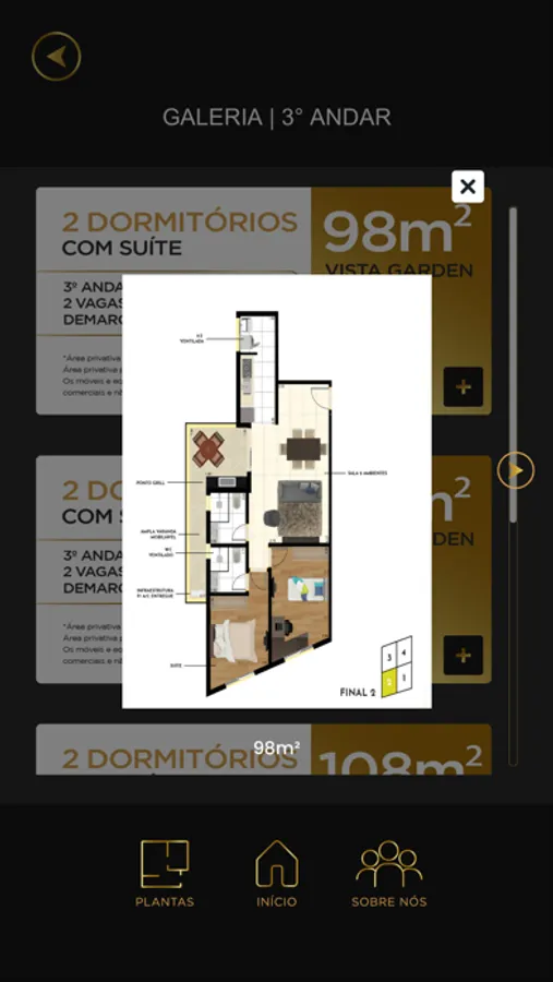 De uma forma completamente inovadora, através da tecnologia de Realidade Aumentada você poderá ver o empreendimento de onde estiver. Veja também na galeria as diferentes plantas dos apartamentos e as informações sobre a construtora.