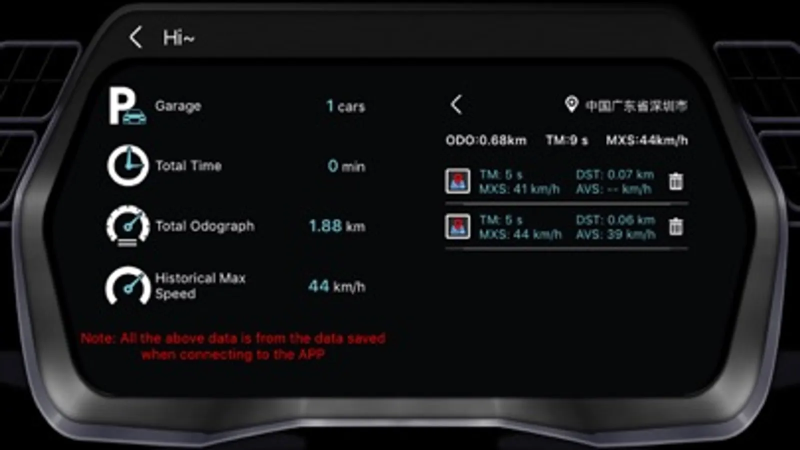 2. Real time display of vehicle status data