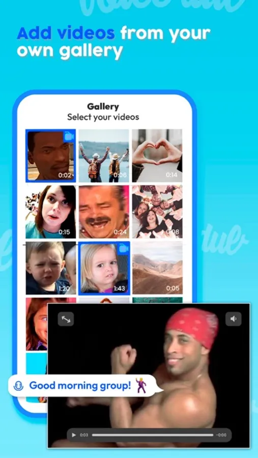 Just choose a video from our templates or upload a video from your device, trim it, add sounds, personalize it, and you're good to go. With voice dub, it's all a game of mix and match. It puts your creative skills to test. Show off your acting skills, do comedy, or just lip-sync.