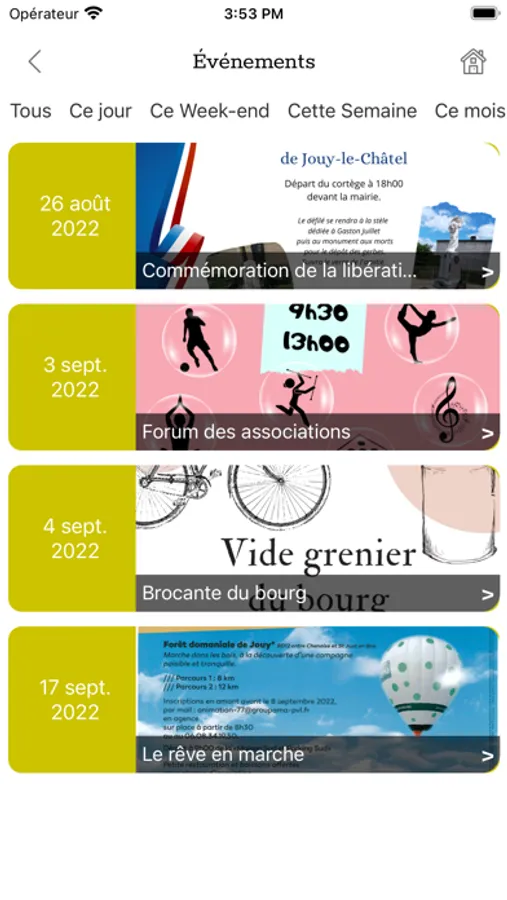 L'application permet de consulter des actualités, des événements, les informations pratiques de la commune.