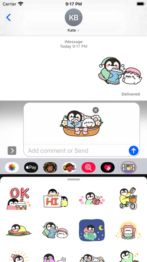 Fun and Cute with "Cute Penguin 10 stickers" pack. It is always ready to add more emotion to your text.