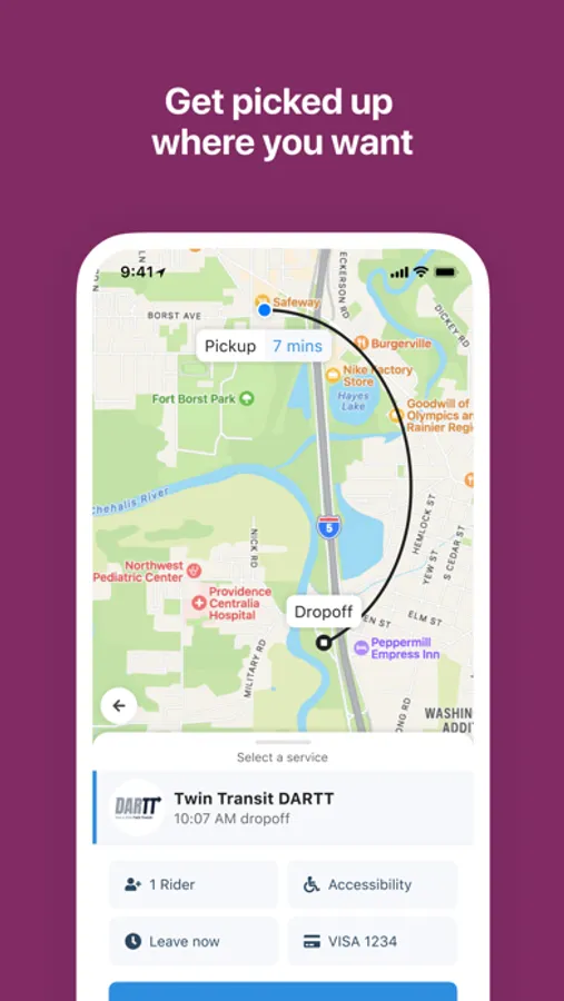 The Twin Transit rider app allows you to book, pay for, and track your ride. Once your reservation is made, a DARTT vehicle will pick you up at the appointed day and time and take you where you need to go.