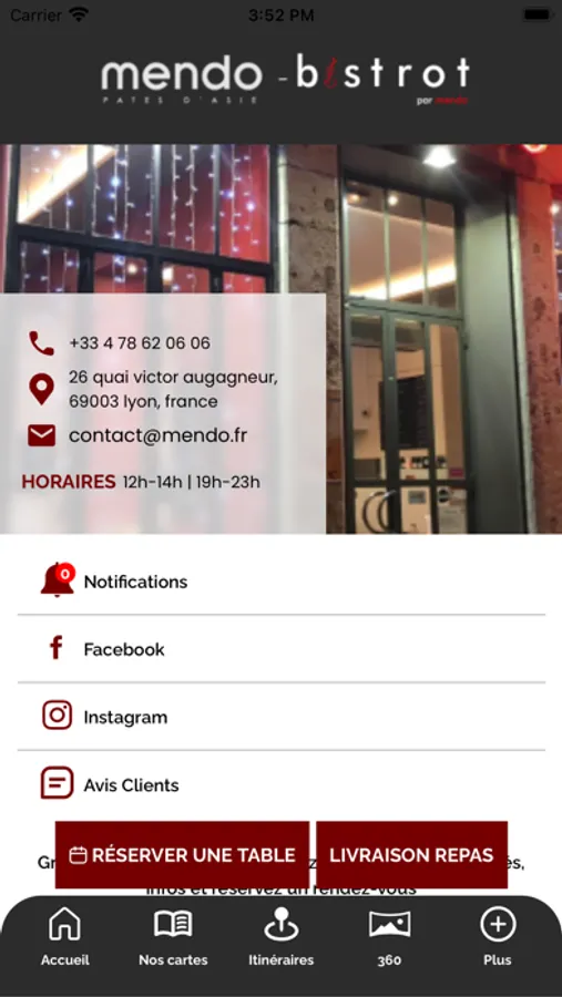 - Visionnez les informations de l’établissement (horaire, adresse,galerie photos, avis client…)