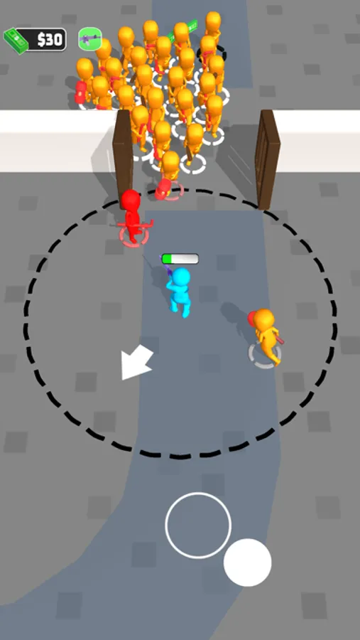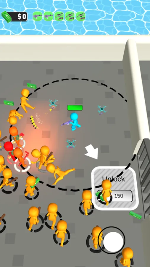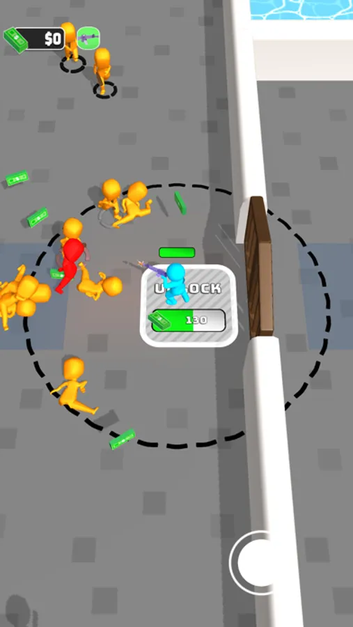 Shoot enemies to earn money and use that to unlock the doors on your way to the exit.