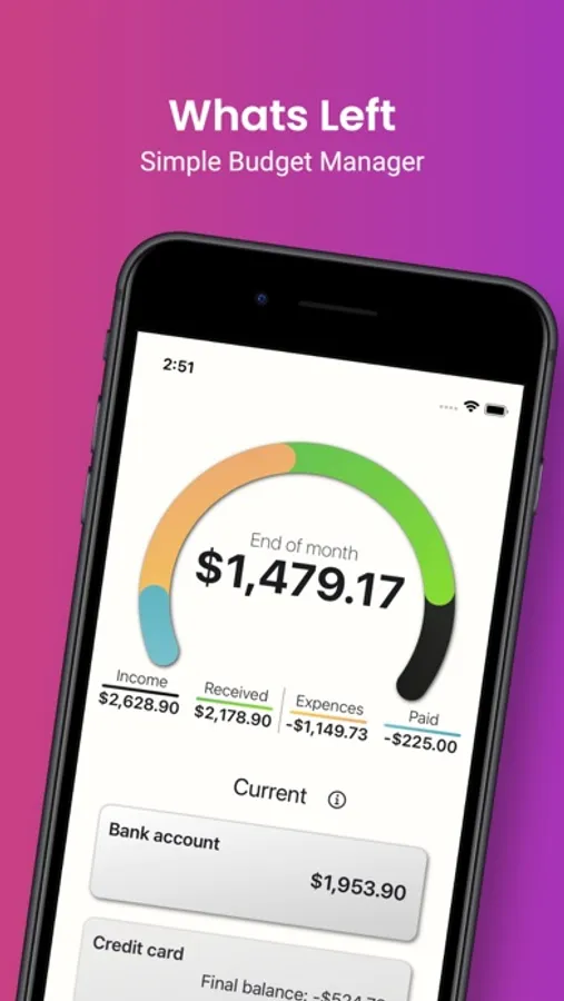 With WhatsLeft you can easily plan your monthly residual budget.
