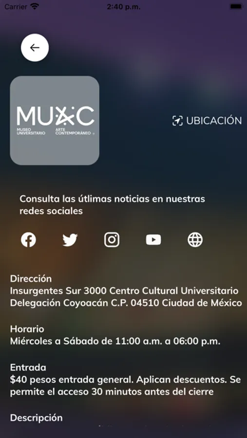 Esta aplicación universitaria ha sido diseñada y administrada por la Secretaría de Desarrollo Institucional (SDI) de la Universidad Nacional Autónoma de México (UNAM). Los módulos que integran está aplicación han sido creados para brindar información cultural universitaria de utilidad que puede ser consultada desde un dispositivo móvil (teléfono celular y tableta digital) conectado a internet, como lo es la información relativa a museos, artes visuales, música, teatro, danza, recintos culturales, académicos, entre otros, que ofrecen las diferentes y diversas entidades académicas y dependencias que integran la UNAM.
