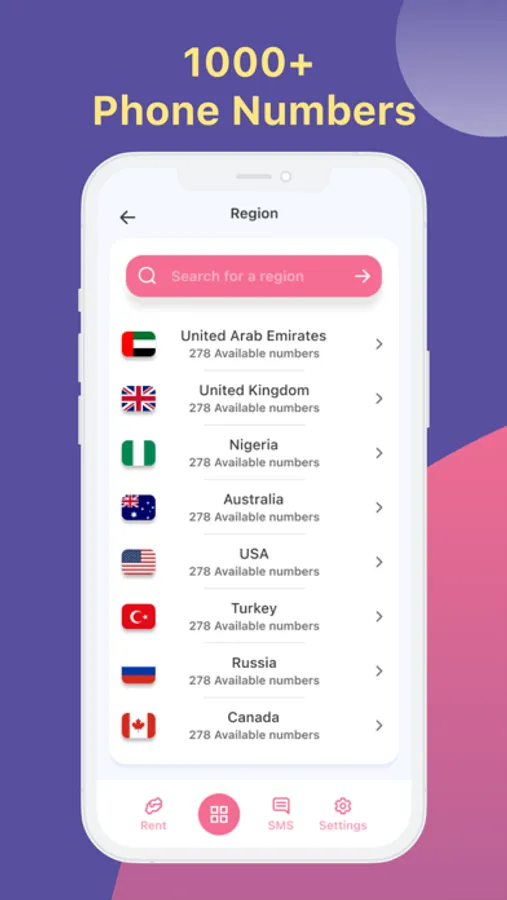 2. Select the region you want to get verified in - Gain access to thousands of phone numbers from over 270 different countries