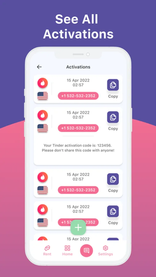 4. Get a one-time-use number for each activation which you can use to receive an SMS and verify your account