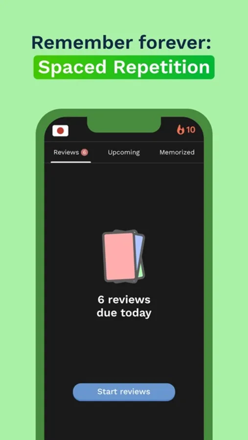 - Remember Forever. With our flashcards, we make sure you never forget. Flashcards all come with video clips from where you learned the word.