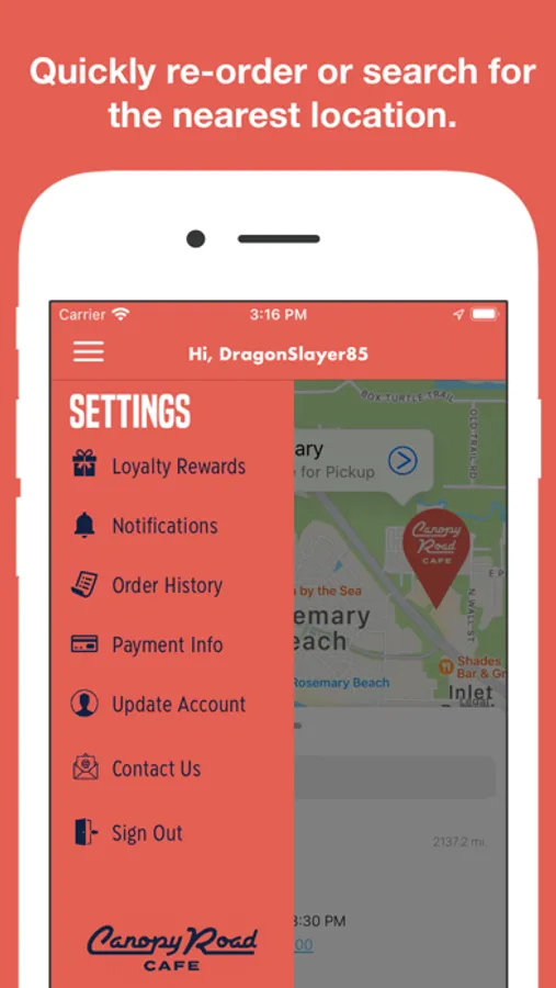 Order ahead with the new Canopy Road Cafe app. Download today so you can start earning free food and catch the latest happenings.