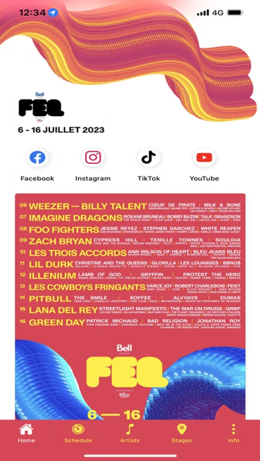 The Festival d’été de Québec mobile application was designed to operate both online (network, Wi-Fi) and offline. To get all the latest lineup updates, make sure you use the application regularly in online mode to download the latest data to your device.
