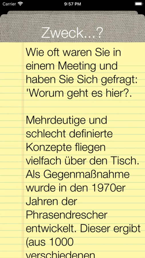 Der Phrasendrescher hilft Ihnen dabei diese Meetings unterhaltsamer zu gestalten.
