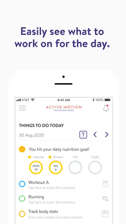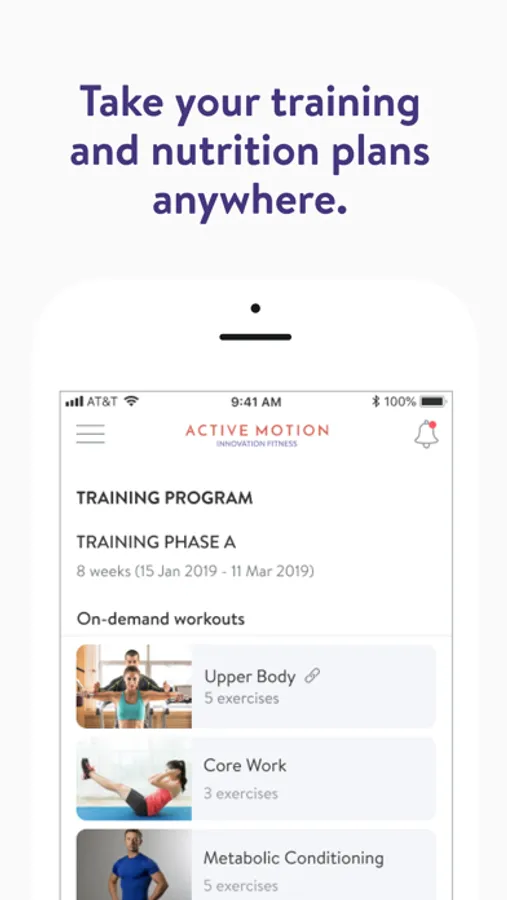 Με την εφαρμογή Active Motion, θα έχετε πρόσβαση σε προγράμματα προπόνησης που έχουν σχεδιαστεί ειδικά για να σας βοηθήσουν να επιτύχετε τους στόχους φυσικής κατάστασης και υγείας σας! Μπορείτε να παρακολουθείτε και να παρακολουθείτε τις προπονήσεις σας, τη διατροφή σας, τις συνήθειες του τρόπου ζωής σας, τις μετρήσεις και τα αποτελέσματα – όλα με τη βοήθεια του προπονητή σας.