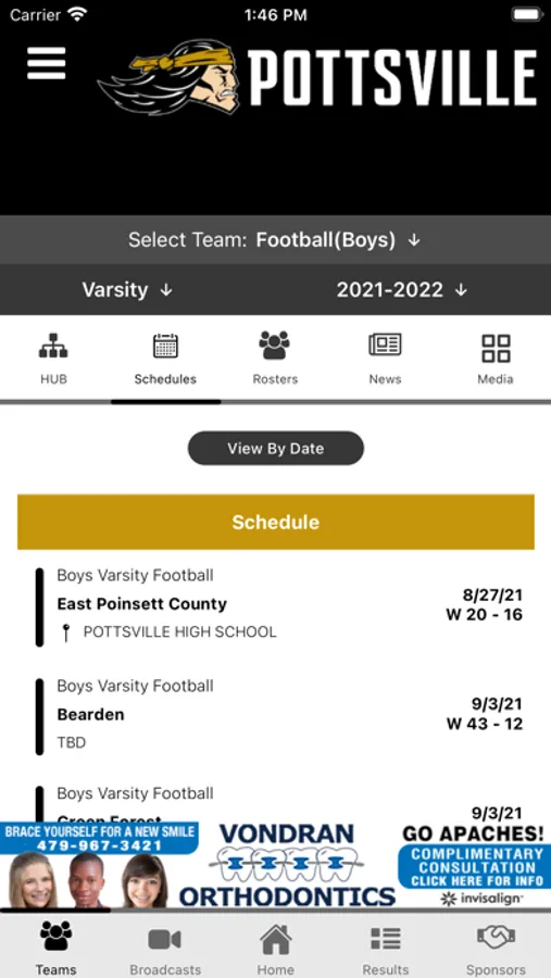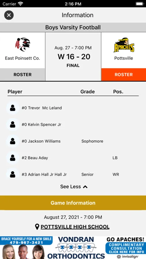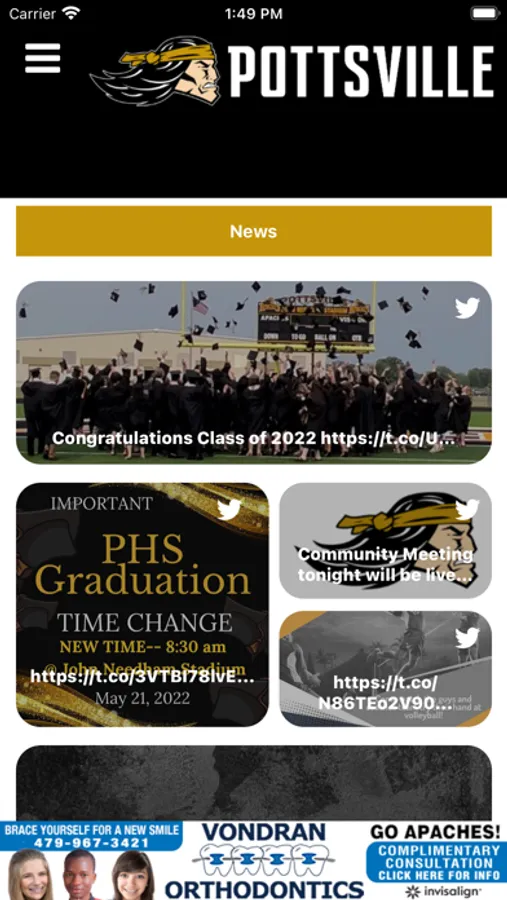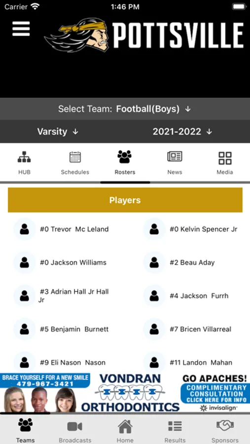 -Supporters: Special Thanks to local boosters and supporters of Pottsville Apache Athletics with a directory including website and in-app calling.