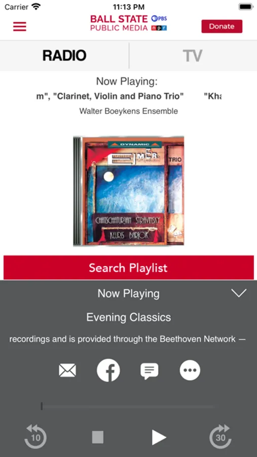 • The Ball State Public Media App displays the web page associated with the program or program segment you are listening to On Demand so you can explore for more information.